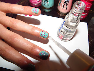 First I coated my nails twice with a cute turquoise base colour called So Laque polish in Vert Chlorophylle.